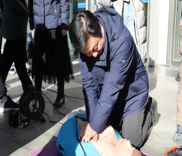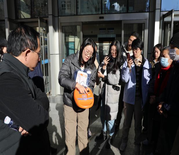 接下来由中湾物业消防部门经理王肇晨现场演示灭火器正确使用方法,并指导师生实操体验;安全教育体验馆雷婷、付萌萌团队系统讲解心肺复苏急救常识与操作技巧。通过“讲解+示范+实践”模式,切实提升师生消防器材使用能力与紧急救助本领。