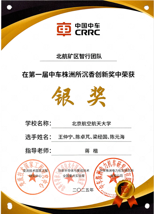 2025年4月,中车株洲电力机车研究所有限公司举办了第五届科技节及第一届沉香创新奖决赛。36365线路检测中心no1智能检测与诊断中心组建的矿区智行团队在全国顶尖高校的激烈竞争中,凭借“矿区智行系统创新项目”荣获沉香创新奖银奖。